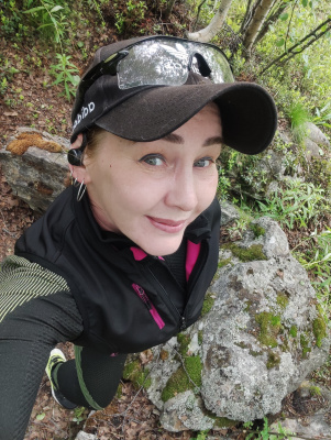 Горный бег, сплошной крутой подъем по камням, корягам, болотным заводям, местами грязный брод. Было ооочень сложно (всё-таки тут нужна спец подготовка). Пару километров вообще чуть ли не ползком вверх. Исключительно на волевых, потому что даже оборачиваться было страшно 🤣