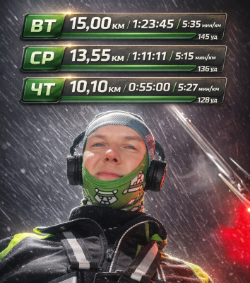 В ПЯТНИЦУ силовая СДУ перед пробежкой в 3 серии, затем свободный бег 10км.