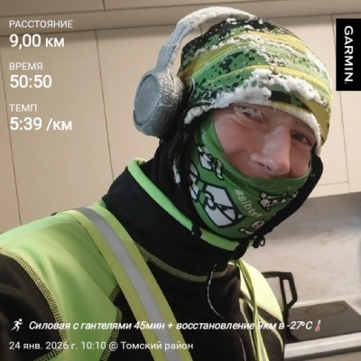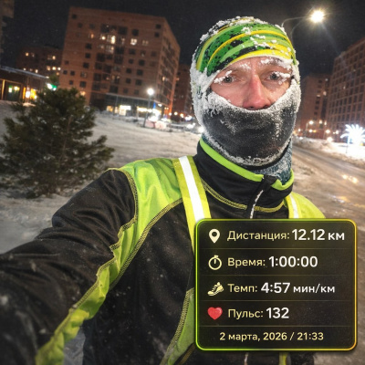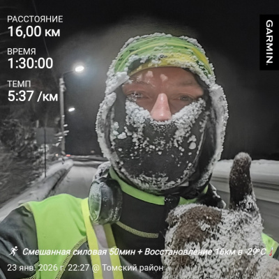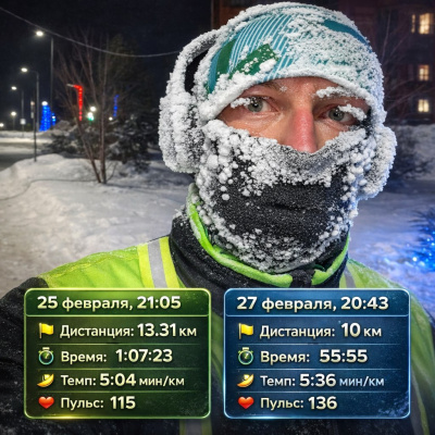 В этот день я подошёл к тренировкам и плану со всей ответственностью. Не смотря на то, что было уже 10 вечера я двинул на пробежку в -31 мороза, а уже ночью с подмороженным носом занялся силовыми💪