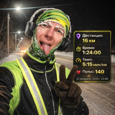 Самочувствие отличное, не упахался👍 Тренировка эта мне даже чем-то нравится) Но в субботу я пасую и бегу по старой доброй трассе. Благо погода потихооооонечку выравнивается и, по крайней мере, уже не -40😌