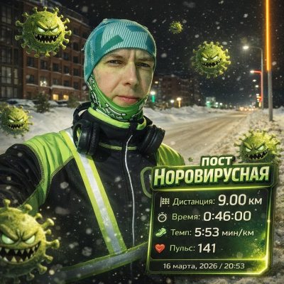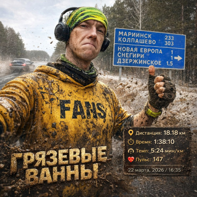 Накануне, в пятницу, должна была иметь место восстановительная десятка, для чего даже взял на работу экип, специально чтобы выполнить её в обед. Но это был полнейший провал. Провал моих ног в бесконечной мешанине из снега и грязи. В городе бегать пока практически невозможно! Ни по тротуарам, ни в парках. Нагрёб всего 2км. Я был столь раздосадован сей несправедливостью, что решительно компенсировал её уже на следующий день, не смотря на то, что вечер мы провели в сауне и хамаме.