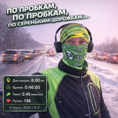 Выйдя с работы пораньше, я и представить себе не мог каким сложным и долгим будет этот путь! Стоял в пробках 130 минут, из которых опоздал на тренировку на 70😫 Разумеется, все уже пробежали и собирались домой. Включая и меня! Но всё же, поняв что день и без того профукан и взяв себя в руки, остался тренить один, без группы тренера. Благо сам тренер задержался, а после и довёз меня до дома!🙏 Каким-то невероятным чудом успел выполнить все ускорения по плану, пусть и с урезанной разминкой без заминки.
