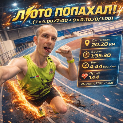 Антон, супер результат! 👍 Темп просто космос, для многих недосягаем 🚀 Мои поздравления! 🤝