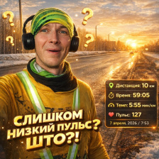 ...именно так заявил мне тренер. Оказывается, слишком низкий пульс, как и высокий, это тоже плохо. Нужно восстанавливаться. "Век живи, век учись!" - подумал я. Впервые за 5 лет такое слышу)