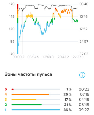 Пульс еле разогнал ,,после километра по 4:30, слегка сбавил и пульс тоже сразу в 3, через 100 метров во вторую зону, опять прибавил и тоже потребовался километр чтобы набрать пульс. Хотя выполнил задание только на половину, заряд получил на весь день. Всем удачной пятницы и выходных!