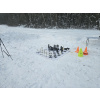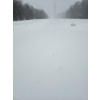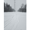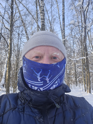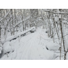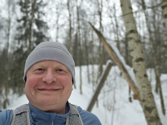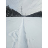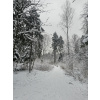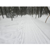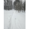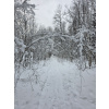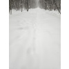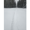 Заметает лес опять конкретно! По горке бегать невозможно, быстрый шаг и то желателен страховочный трос. Один круг сделал, чуть не полетел вниз тормашками. Вроде ноль градусов, но из-за пурги пожалел, что без бафа и с легкими перчатками сегодня. На просеке выдувает очень сильно, но в самом лесу благодать.