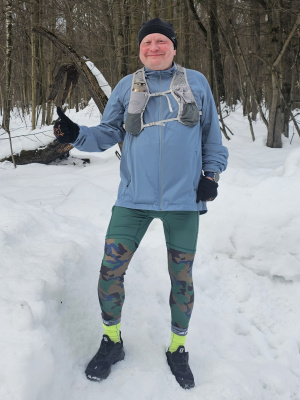 Побегано. В лесу снежное нечто. Возникла мысль, а может надо на лыжах... Но как пришла, так и ушла прочь. Непонятно как, но умудрился держать сегодня пульс во второй зоне. Первый раз по такому снегу! Сегодня примерил новые тайтсы, шедшие из Китая аж целый месяц.