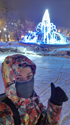 Увидела, что поставили на фонтан зимнее новогоднее украшение, да и балаклаву новую выгуливаю. Радости нет предела😁!