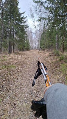 Если предстоит путь-дорожка , а палок с собой, нет.... а ты так натренировалась, что спокойно идёшь и имитируешь технику скандинавской ходьбы. И в осознанной ходьбе можно выбирать разные варианты акцента своего внимания, например на работу рук, плеч, раскрытие кисти и вовлечение корпуса или на работу ног и всей стопы, с отталкиванием пальцами, особенно большого. И самое интересное это изменение темпа ходьбы, от медленного до более быстрого и энергичного. Ну ведь тренировка!, только без инвентаря.