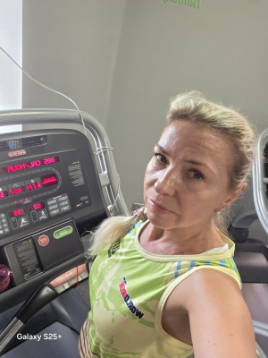 Первая длительная после болезни, с трудом. А так то мне 5 октября бежать полумарафон. Не знаю, буду думать бежать или не бежать. Две недели без тренировок. Еще и не совсем здорова. Насморк присутствует, как и кашель остаточный. До пятницы решу точно, а пока что буду регулярно тренироваться.