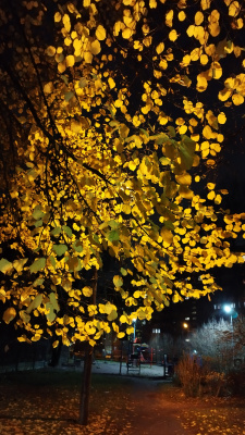 Когда-то придуманный на двоих стишок с одним знакомым) дословно уже не помню, но пусть будет так) он, конечно, про раннюю осень, но вспомнился, глядя на светящиеся листья)))