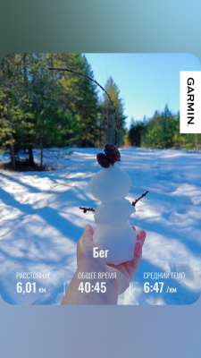 Сегодня по плану хотела пробежать 10 км в лёгком темпе, но на 5-том км остановилась в лесу и стала лепить снеговиков 😁 устроила им фотосессию, пока лепила и фоткала, весь интерес к бегу пропал, в итоге ещё полтора км пробежала и на этом хорош. 😎 Не стала себя мучить, но после бега я погуляла с собакой ещё и на велосипеде пришлось прокатиться, так что отлынить не получилось 😁