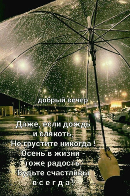 Сегодняшняя осенняя дождливая, пасмурная погода создаёт особую атмосферу. Небо затянуто серыми☁️☁️☁️ тучами, из которых неспешно падают капли 🌧️🌧️🌧️дождя. Воздух наполнен свежестью и легкой сыростью. В такую погоду хочется укутаться в теплый плед, взять ☕☕☕чашку горячего чая и просто наслаждаться моментом. Греться под пледом с чашечкой чая будем вечером, ну а пока прогулка под дождём 🌧️🌧️🌧️