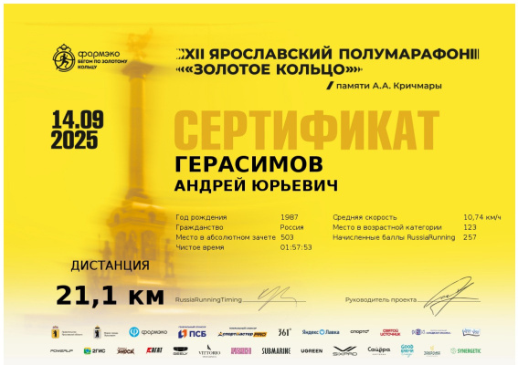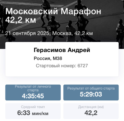 По факту пробежал полумарафон и улучшил свой личный рекорд-выбежал из 2 часов: 01:58:05. А также коротко переговорил с Ринасом Ахмадеевым: он обещал удивить на забеге в Пушкине в сентябре.