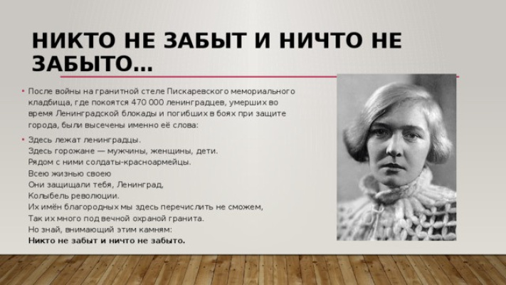 Никто не забыт и ничто не забыто.