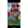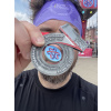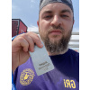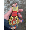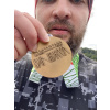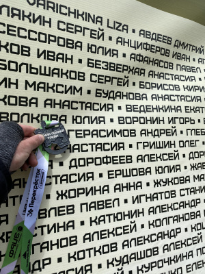 Маргарита, привет! На этом забеге медаль всегда с каким-то движущимся элементом, что приятно удивляет и радует. В этом году на ленточке был рецепт приготовления пиццы "Тунец и лук". В общем всё сделано для того, чтобы бегун не остался голодным.)