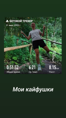 Вечерняя пробежка — это моя маленькая победа над собой каждый день. Легкость в теле, свежий воздух, приятный ритм шагов — всё это наполняет меня энергией и радостью. Настроение супер, кажется, даже звезды светят ярче!