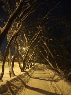 Сегодня очень скользко. Лед припорошило свежим снежком.
