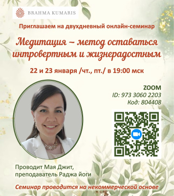 Всех кому интересна медитация приглашаю на онлайн-семинар, который будет проходить сегодня и завтра (22-23 января), начало в 19:00 МСК