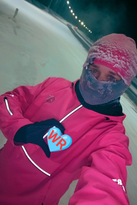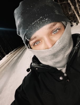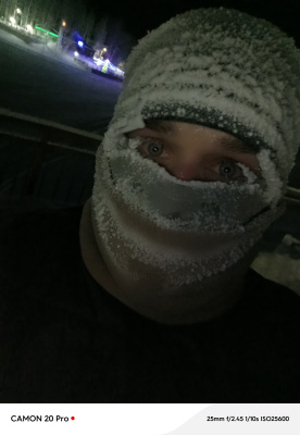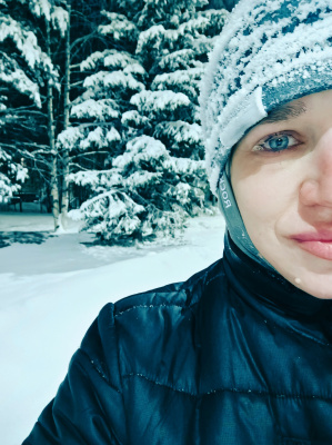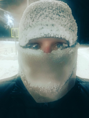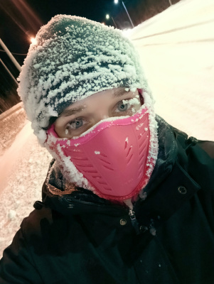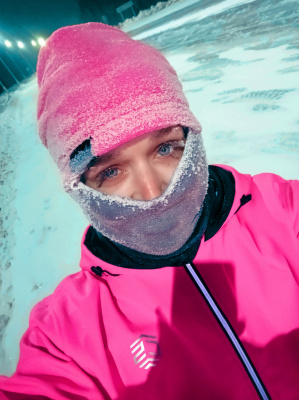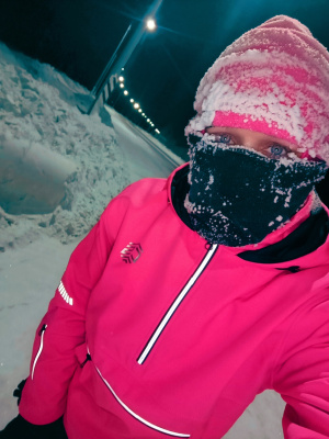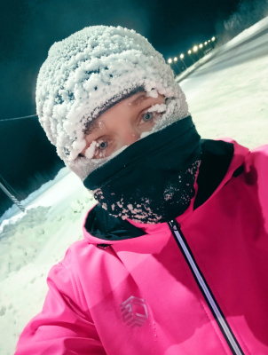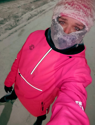 Вот сегодня уже и в минус 35 пробежалась. Пару раз пришлось останавливаться, чтобы ресницы от льда освободить. Вещи все насквозь мокрые, как всегда.