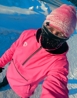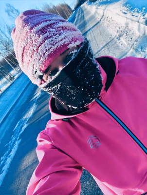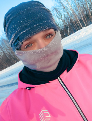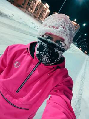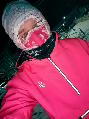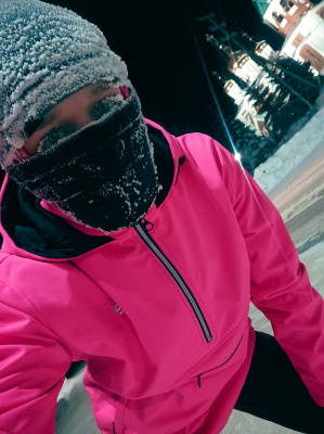 Днем бегала в такой мороз впервые, обед оставила на после обеда. Ну и вечернюю пробежку тоже уже планировала, там по прогнозам было -37. Мне хотелось себя проверить. Правда, вечером вчера уже был ветер, ощущения иные, натянула на либо по мимо балаклавы, бафф,