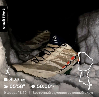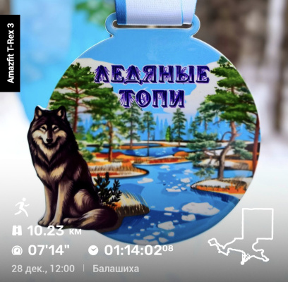 Трейл "Ледяные топи". Никогда ещё десятка не давалась так сложно. Болото замёрзло плохо, лёд тонкий. Земля под ногами мягкая, как будто бежишь по батуту. Некоторые проваливались. При мне один дядька ушёл по пояс. Вытащили.