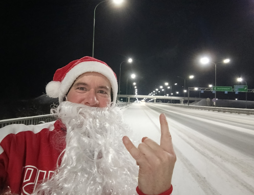 Не спалось. В два ночи с ребенком побежали бегать. Первые 8 км бежали вместе - для меня это было "скоростная с языком на плече". Потом ребенок ушел домой, а я сбегал было посугробиться, но не зашло, через 200 метров вернулся на дорогу и побежал обратно. Теперь можно идти досыпать с чистой совестью.