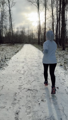 У нас в Чехове сегодня -7, местами ветрено, особенно в той части парка, которая соприкасается с большим полем. Ветер не попутный, а в лицо, немного обжигает щеки, но не унываем и бежим, зима только началась 🏃🏻♀️👟 Подморозило всю грязь и лужи, это радует)
